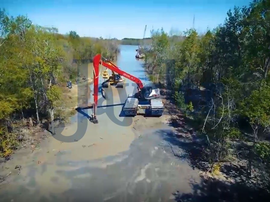 Our Solution: We deployed a 10” dredge system from a Crain Barge and a pipeline 2000’ into the swamp.