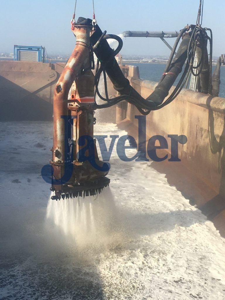 Project Description: BAE System Ship Repair of San Diego, Ca was contracted by the USA Navy to install the largest Dry Dock Facility in the United Sates for maintaining the Navy’s larger ships that are docked in the Port of San Diego. BAE Systems Ship Repair subcontracted Manson Construction to mechanically remove 200,000 cubic yards of material to reach the total dockside water depth of -80 feet MLT. Of the 200,000 cubic yards, 80,000 cubic yards were to be transported by tug and hopper barge to an offloading site where Javeler Marine Services TO400 submersible dredge pump successfully off loaded over 80 barges pumping the material over 3,700’ to the disposal site. The soils pumped by Javeler Marine Services were for beneficial use in the preservation of an area highly habited by sea turtles in San Diego Bay. The soils were to be evenly spread throughout 117 cells with an elevation variation of only 8 inches throughout the entire preservation area while maintaining very low turbidity levels.