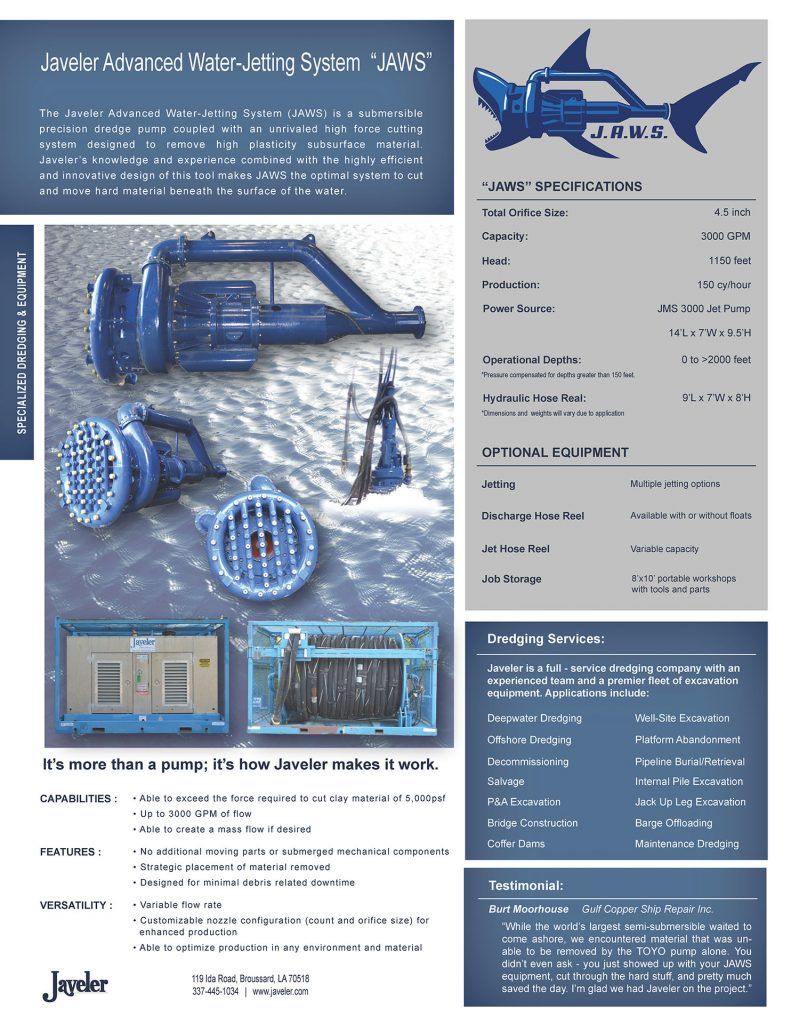 Javeler offers more than just excavation equipment. After 50+ years, Javeler remains an innovative leader in applied and responsive dredging solutions. Pioneering deep-hole excavation in the Gulf of Mexico, Javeler remains committed to expanding and perfecting our tooling capabilities, techniques, and global presence.
